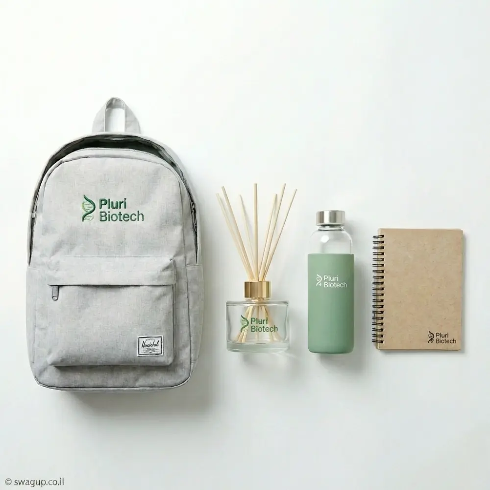 המשלבת ציוד נשיאה איכותי עם פריטים שמשפרים את האווירה בסביבת העבודה. השילוב בין תיק הגב המקצועי למפיץ הריח והאביזרים האקולוגיים יוצר חוויה ממותגת שמשדרת צמיחה, חדשנות ודאגה לפרטים הקטנים.